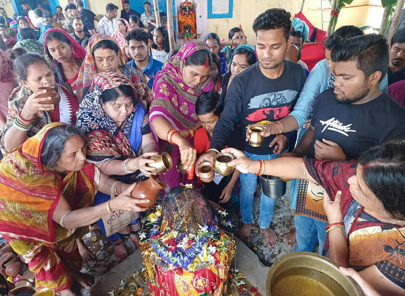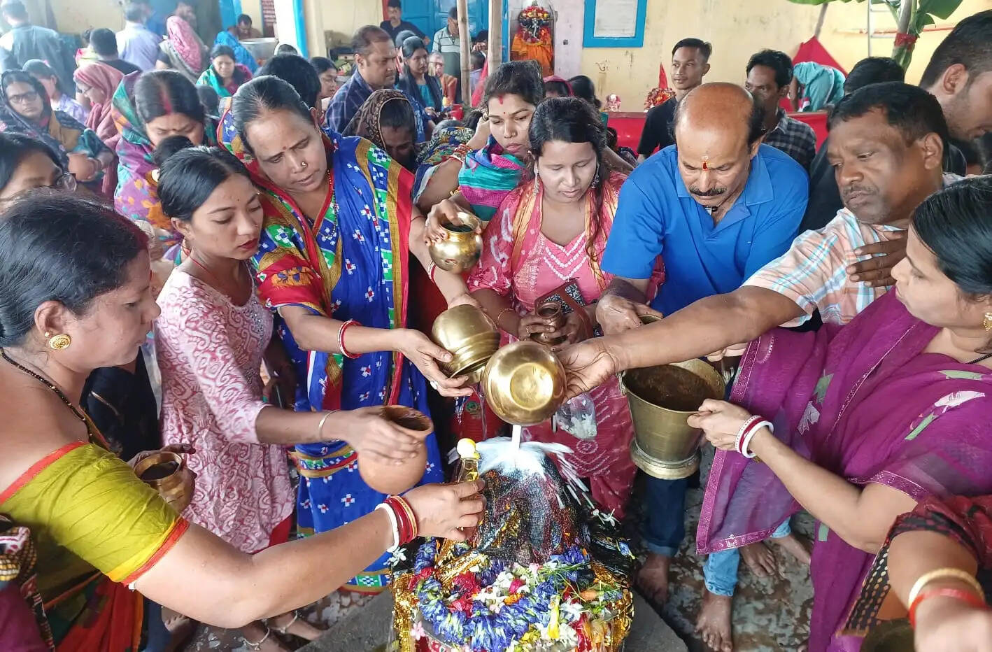 On Shani Jayanti, devotees gathered at the Ashtashambhu Temple in Chandini Chowk, Cuttack, to offer water to the idol of Lord Shani, showcasing their devotion.