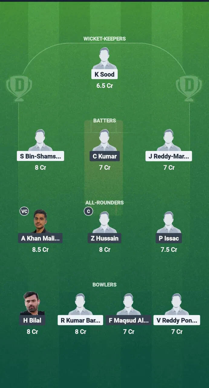 - Bowlers: Hazrat Bilal, Rajat Kumar Barik, Fahad Maqsud Ali Khan, Venkateswara Reddy Pondugula