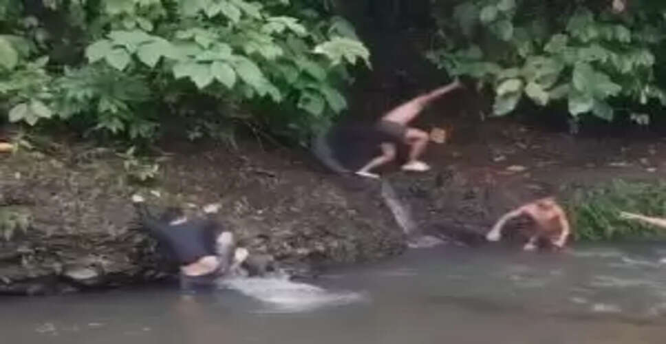 The footage, which is currently trending on social media, begins with three young men enjoying a serene moment in a stream. One of them is seated near the bank, enveloped by lush greenery and dense trees.